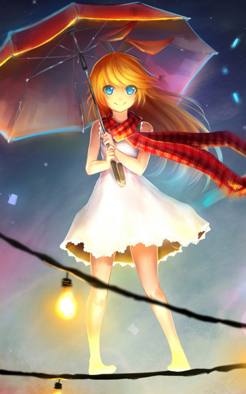 Назад к обои девушка, улыбка, зонт, аниме, шарф, арт, лампочки, Kirisaki Chitoge