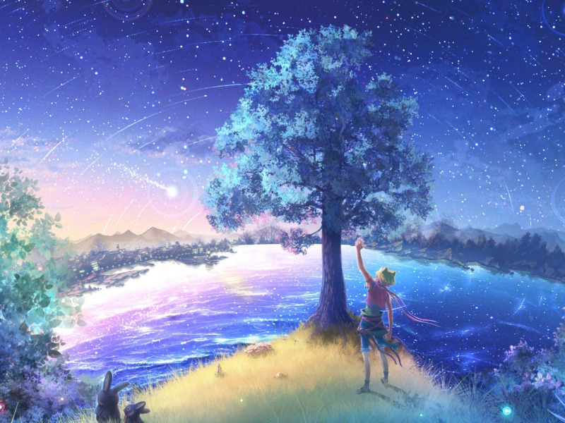 Назад к обои небо, звезды, ночь, природа, аниме, арт