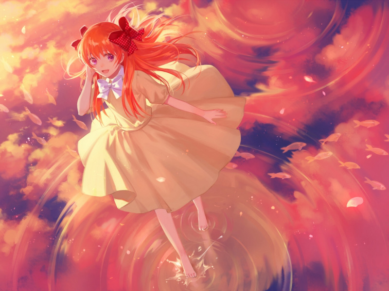 Назад к обои небо, вода, девушка, облака, улыбка, отражение, аниме, арт