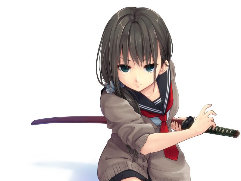 Назад к обои взгляд, девушка, оружие, фон, катана, форма, жест, art