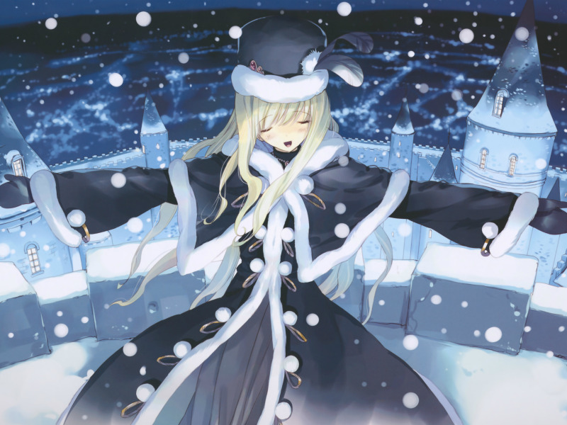 Назад к обои зима, снег, замок, вечер, Алиса, Alice in Wonderland, пальто, art