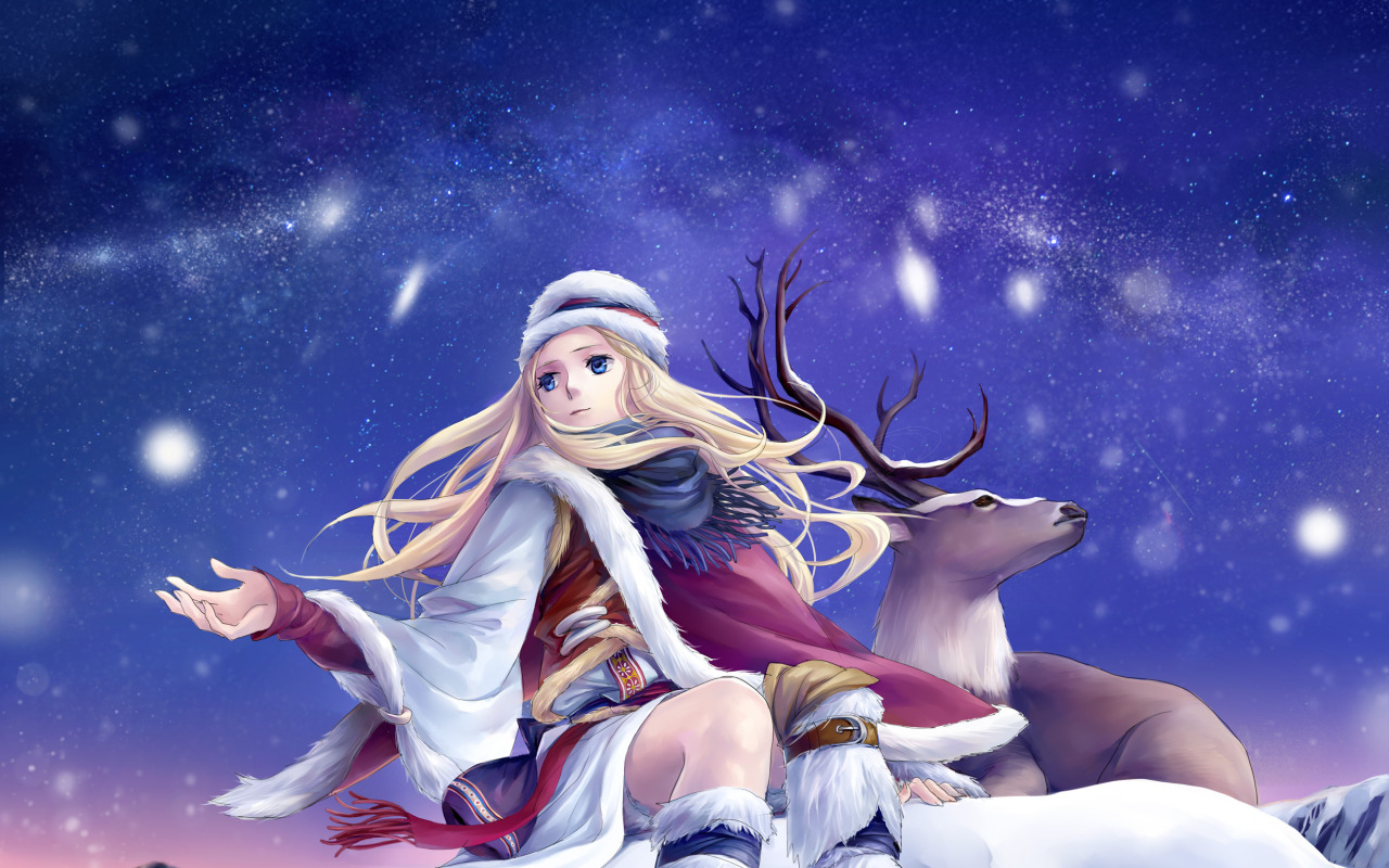 Назад к обои зима, небо, звезды, снег, олень, арт, девочка, Ann