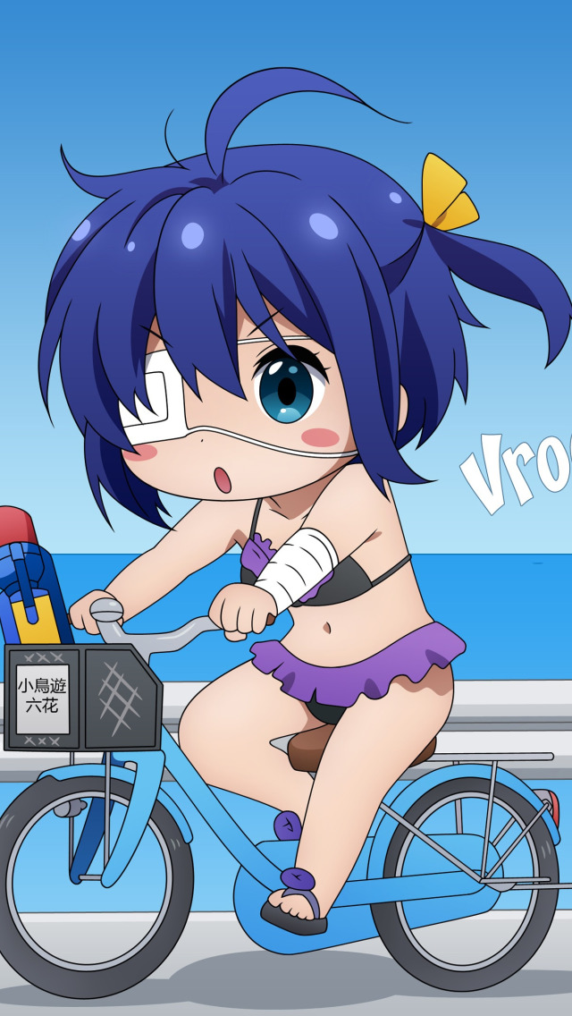 море, купальник, велосипед, каникулы, набережная, синие волосы, повязка на глаз, чибики