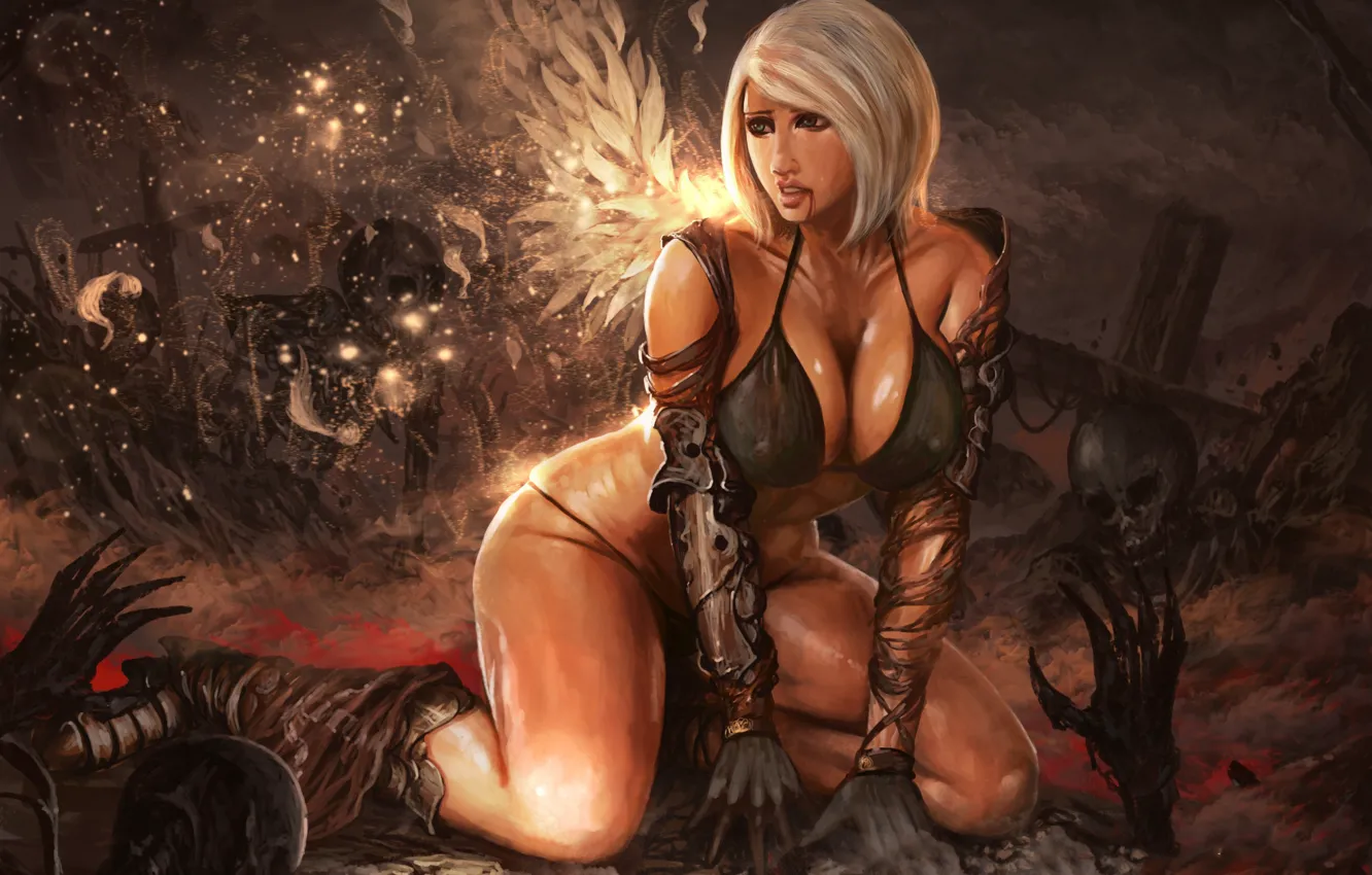 Девушка, свет, секси, ангел, перья, скелет обои на телефон (фото, картинки)