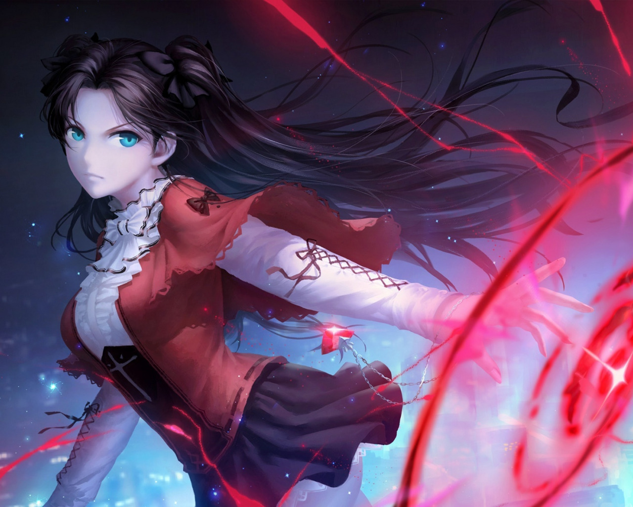 Назад к обои девушка, город, магия, дома, аниме, арт, кулон, цепочка