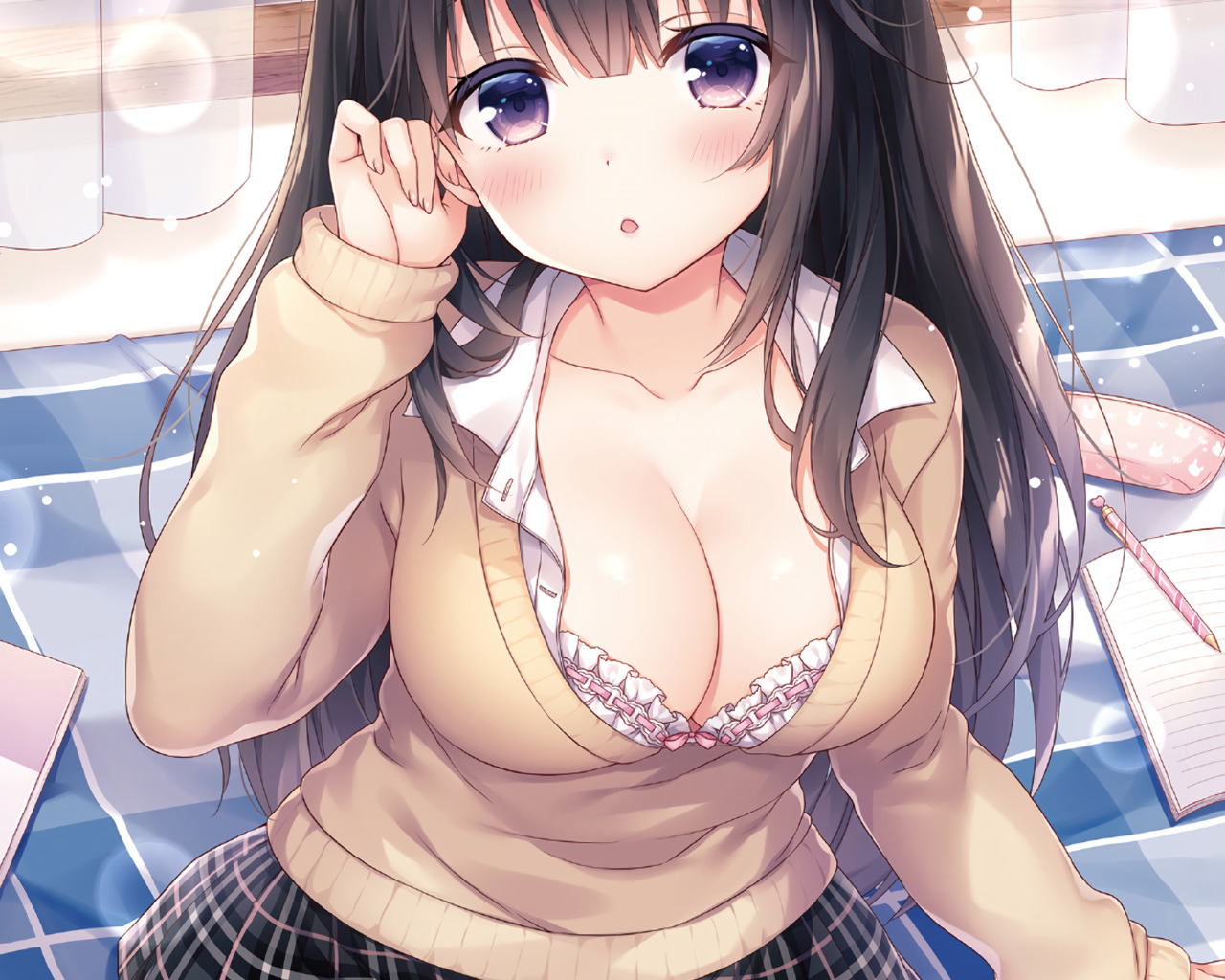girl, sexy, long hair, boobs, anime, beautiful, pretty, brunette