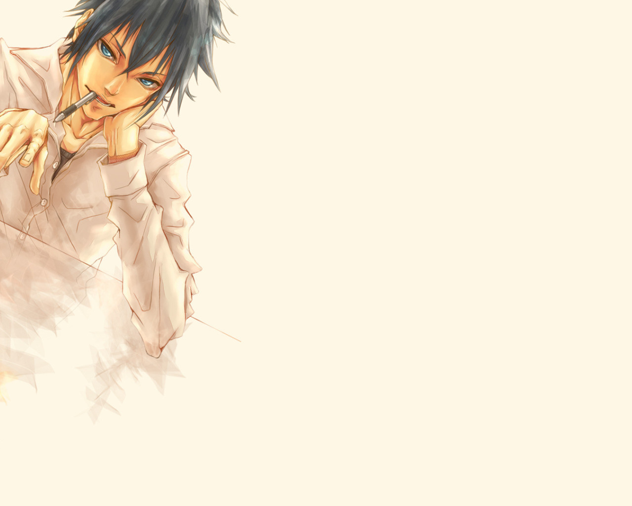 Назад к обои ручка, парень, светлый фон, psycho-pass, kougami shinya