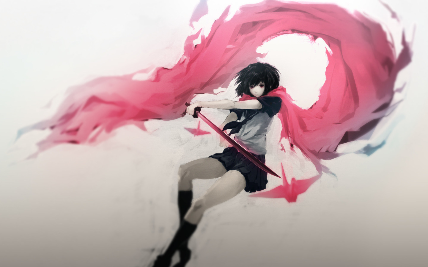 Назад к обои девушка, оружие, катана, аниме, шарф, арт, школьница, hombre