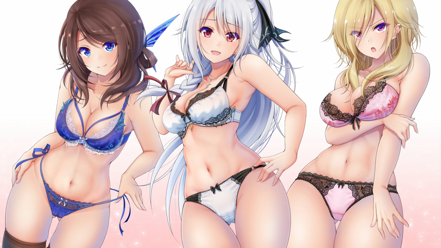 Назад к обои girl, sexy, lingerie, Cameltoe, bra, cleavage, panties, thighhighs