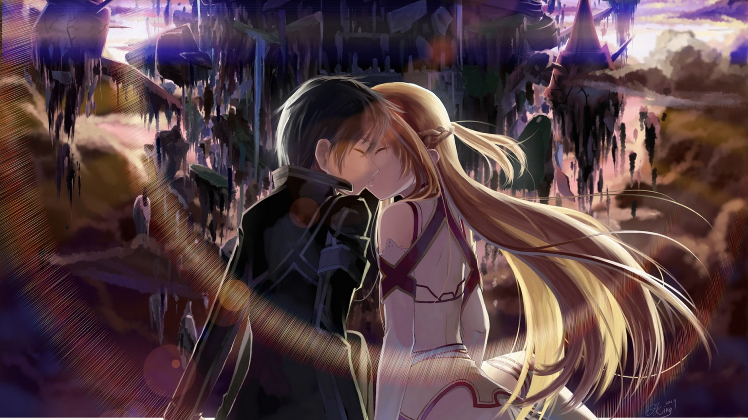 Назад к обои девушка, закат, город, поцелуй, аниме, арт, парень, двое