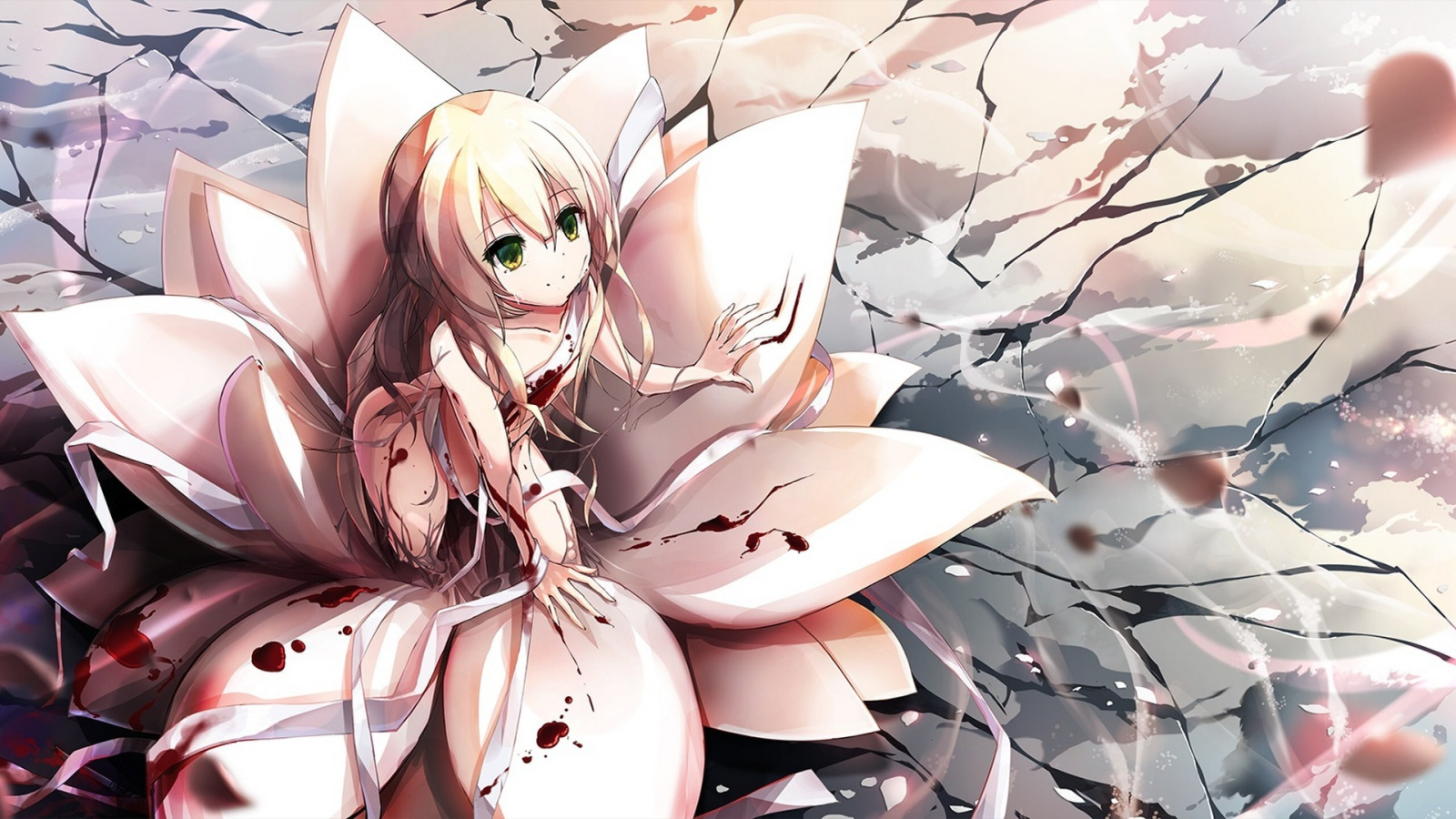 Назад к обои девушка, цветы, улыбка, кровь, аниме, арт, бинты, riburanomind