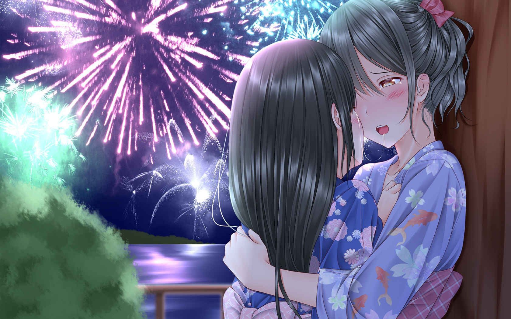 Назад к обои девушка, поцелуй, салют
