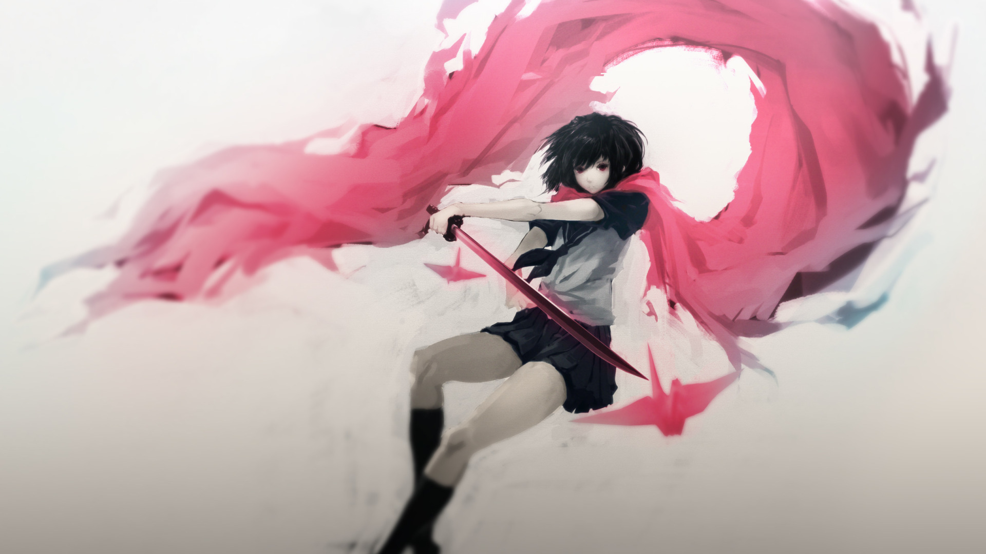 Назад к обои девушка, оружие, катана, аниме, шарф, арт, школьница, hombre