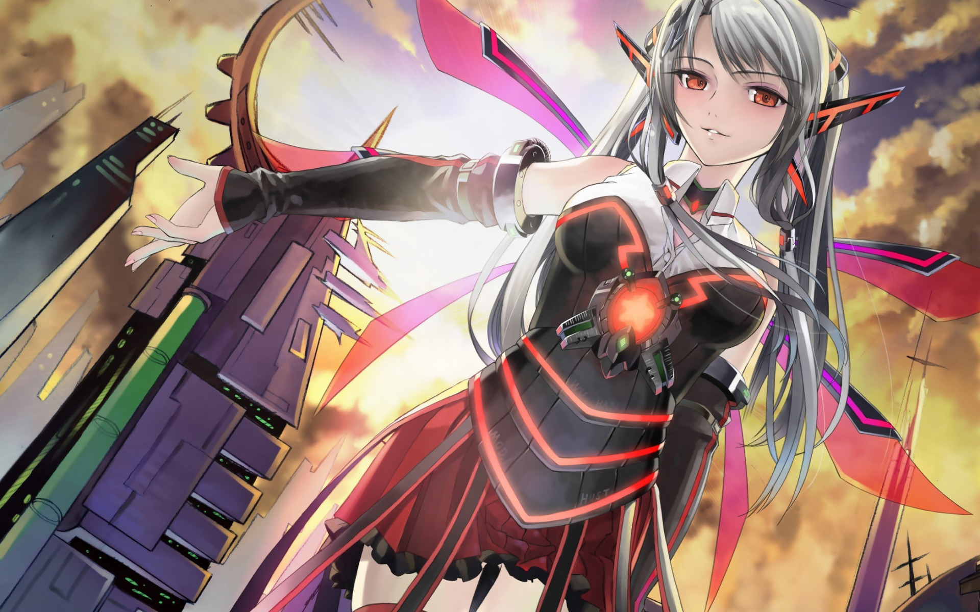 Назад к обои девушка, город, крылья, арт, мех, okingjo