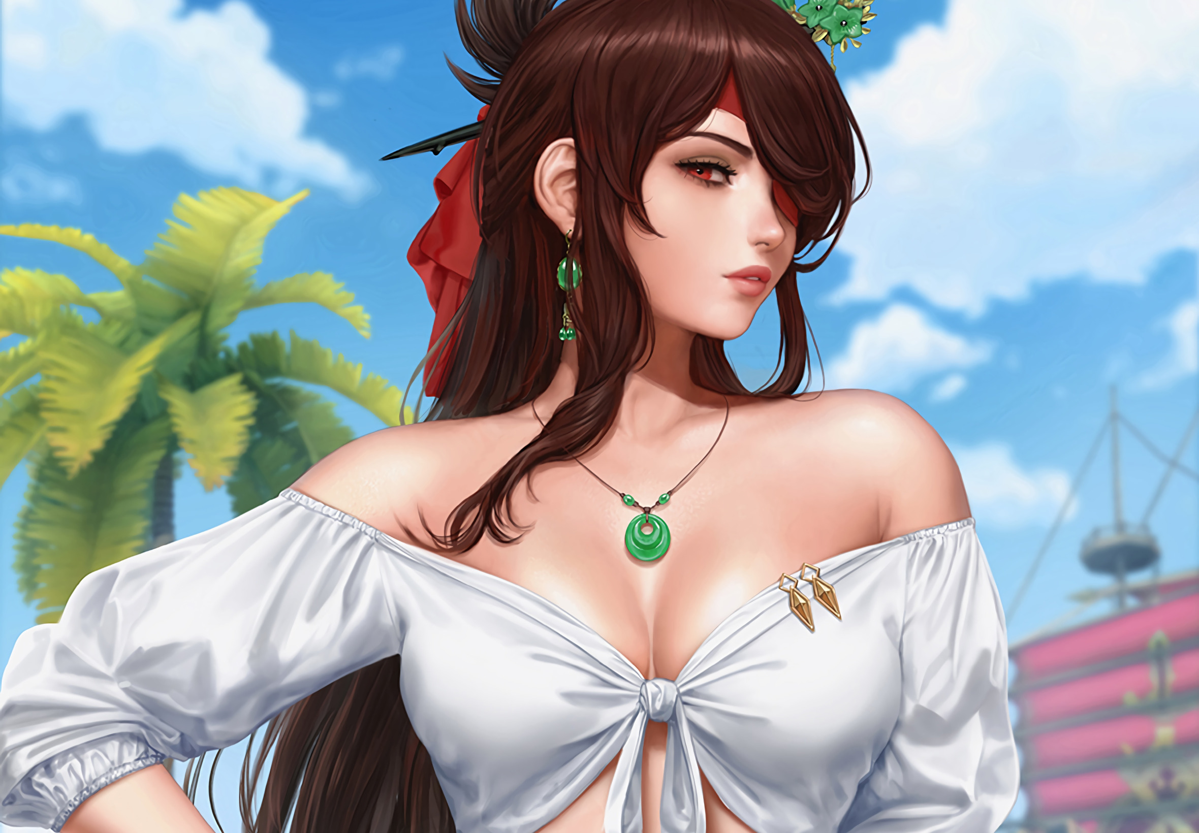 Назад к обои girl, sexy, cleavage, blouse, long hair, boobs, anime, beautiful
