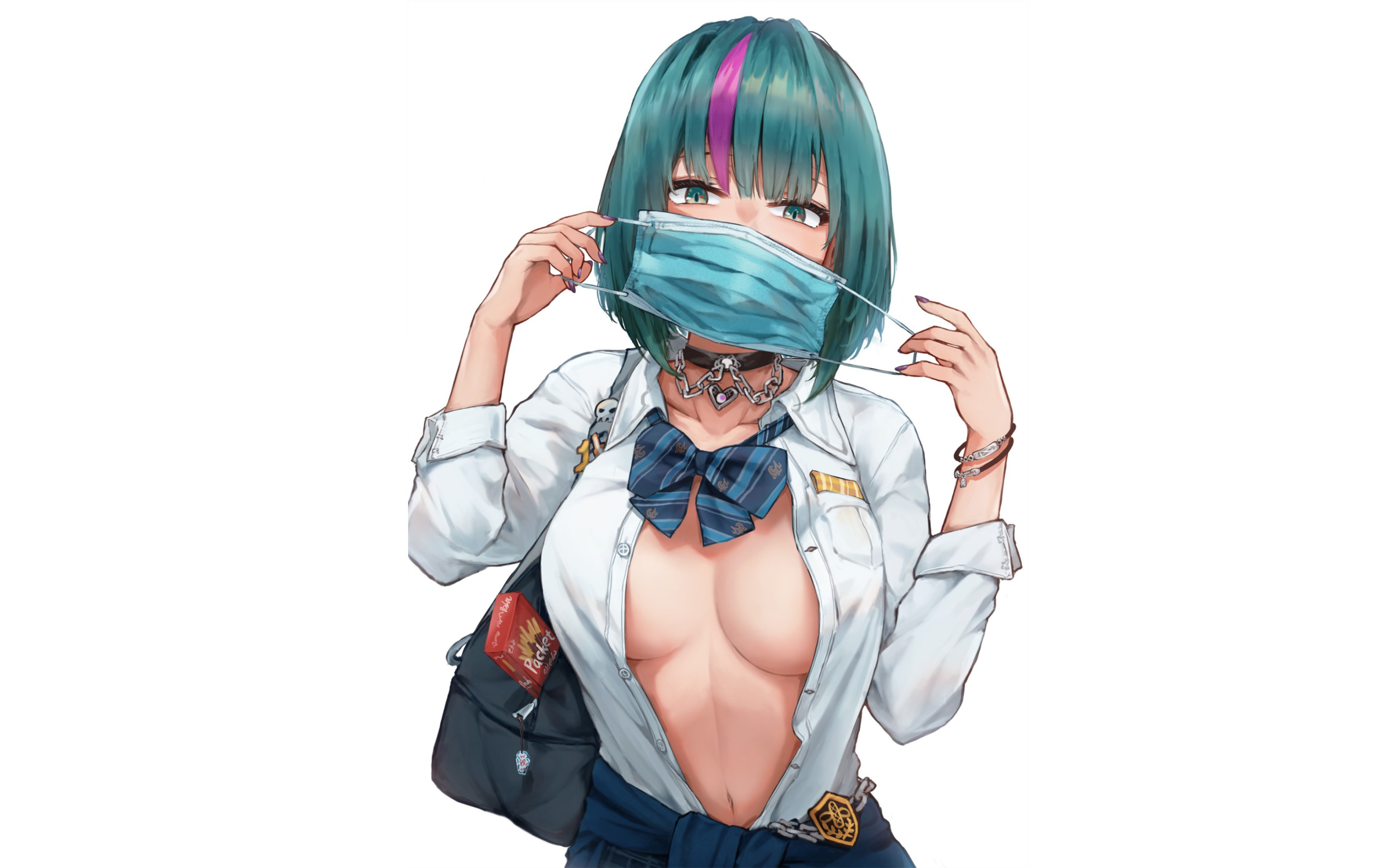 green, girl, sexy, cleavage, boobs, anime, short hair, breasts