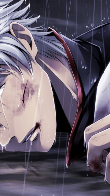 Назад к обои дождь, кровь, порезы, парень, gintama, Sakata Gintoki