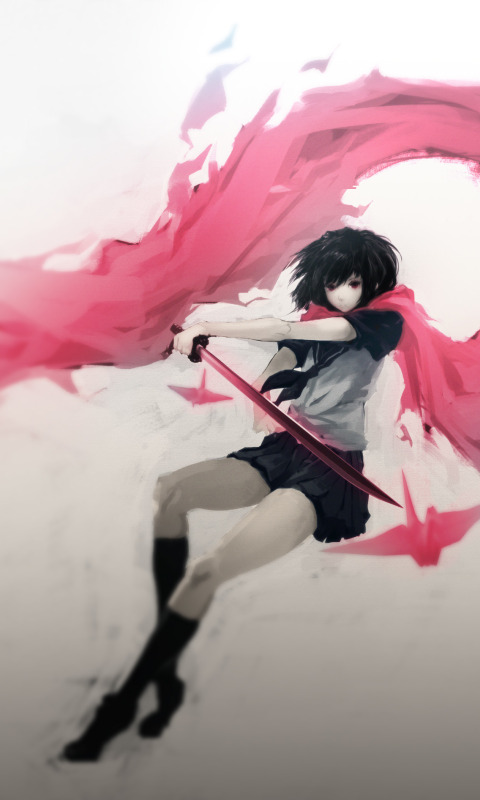 Назад к обои девушка, оружие, катана, аниме, шарф, арт, школьница, hombre