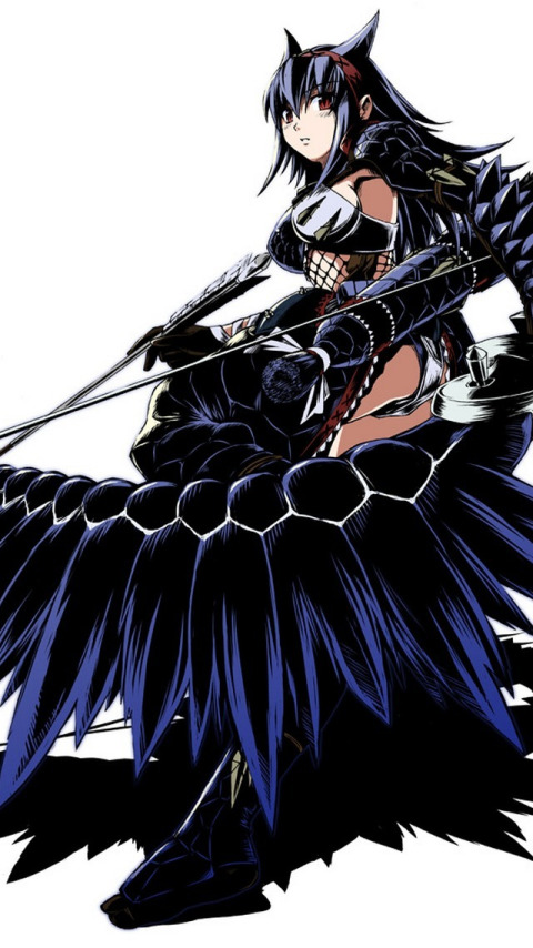 Назад к обои девушка, оружие, лук, арт, стрелы, ушки, Monster Hunter, funamushi
