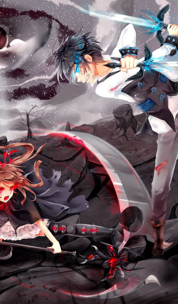 Назад к обои небо, девушка, облака, деревья, оружие, кровь, меч, аниме