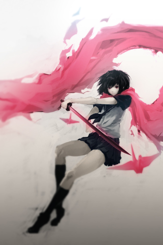 Назад к обои девушка, оружие, катана, аниме, шарф, арт, школьница, hombre
