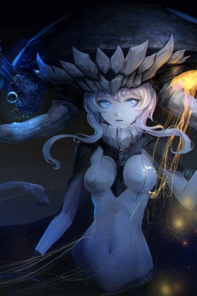 Назад к обои девушка, пузыри, аниме, арт, медузы, под водой, pcw, kantai collection