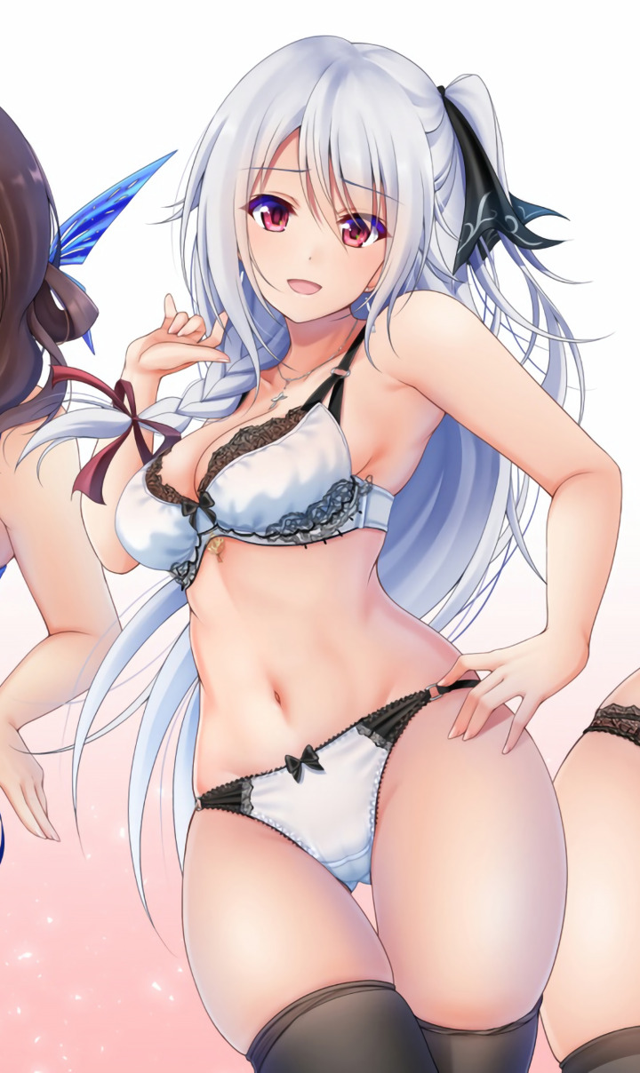 Назад к обои girl, sexy, lingerie, Cameltoe, bra, cleavage, panties, thighhighs
