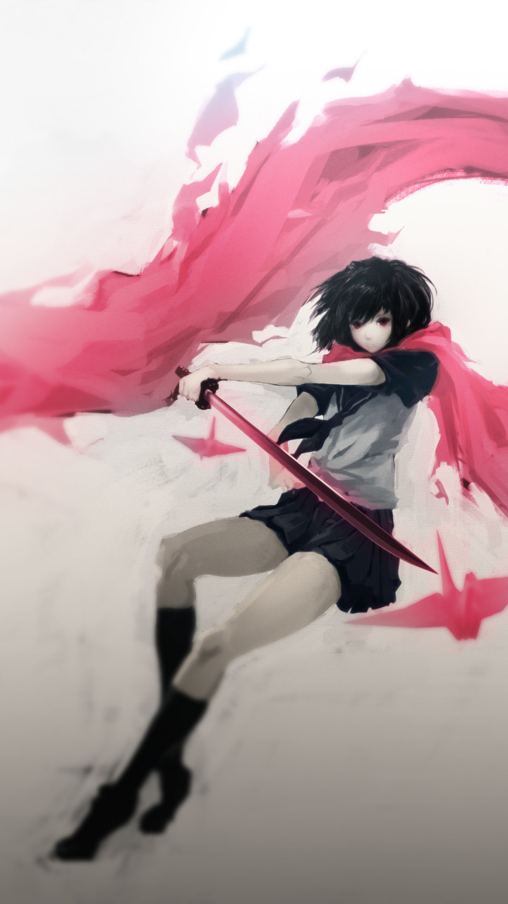 Назад к обои девушка, оружие, катана, аниме, шарф, арт, школьница, hombre