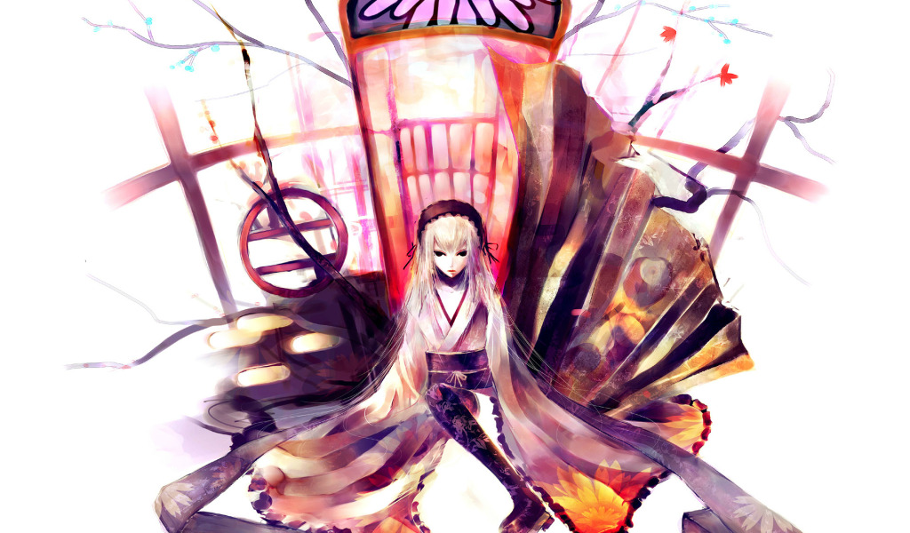 Назад к обои дверь, белый фон, кимоно, rozen maiden, suigintou, девы розена