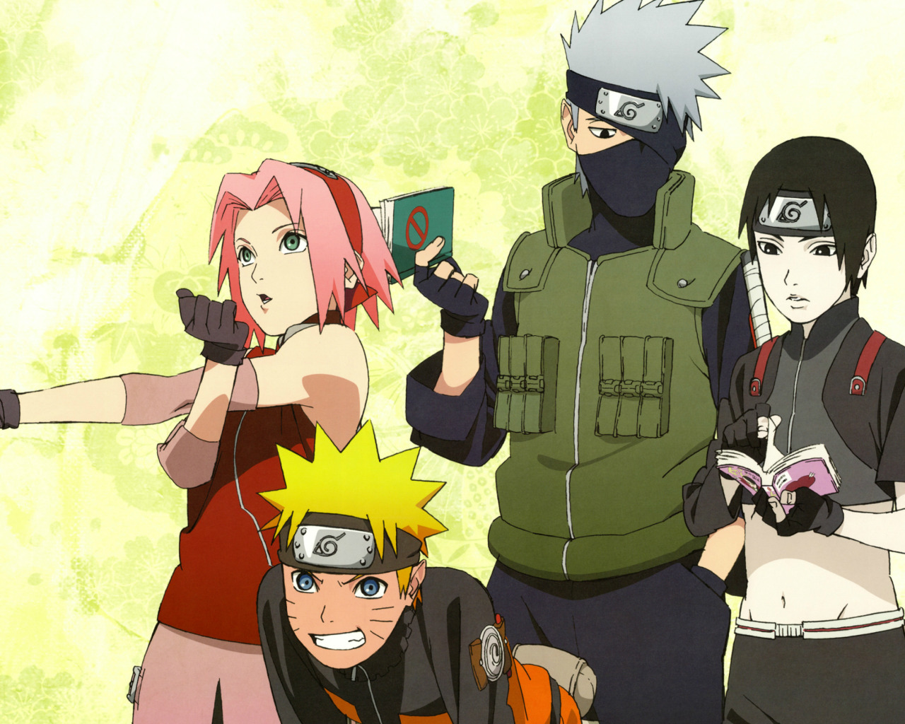 Назад к обои книга, повязка, Naruto, отряд, sakura, жилет, ninja, Hatake Kakashi
