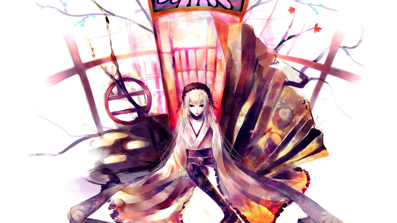 Назад к обои дверь, белый фон, кимоно, rozen maiden, suigintou, девы розена