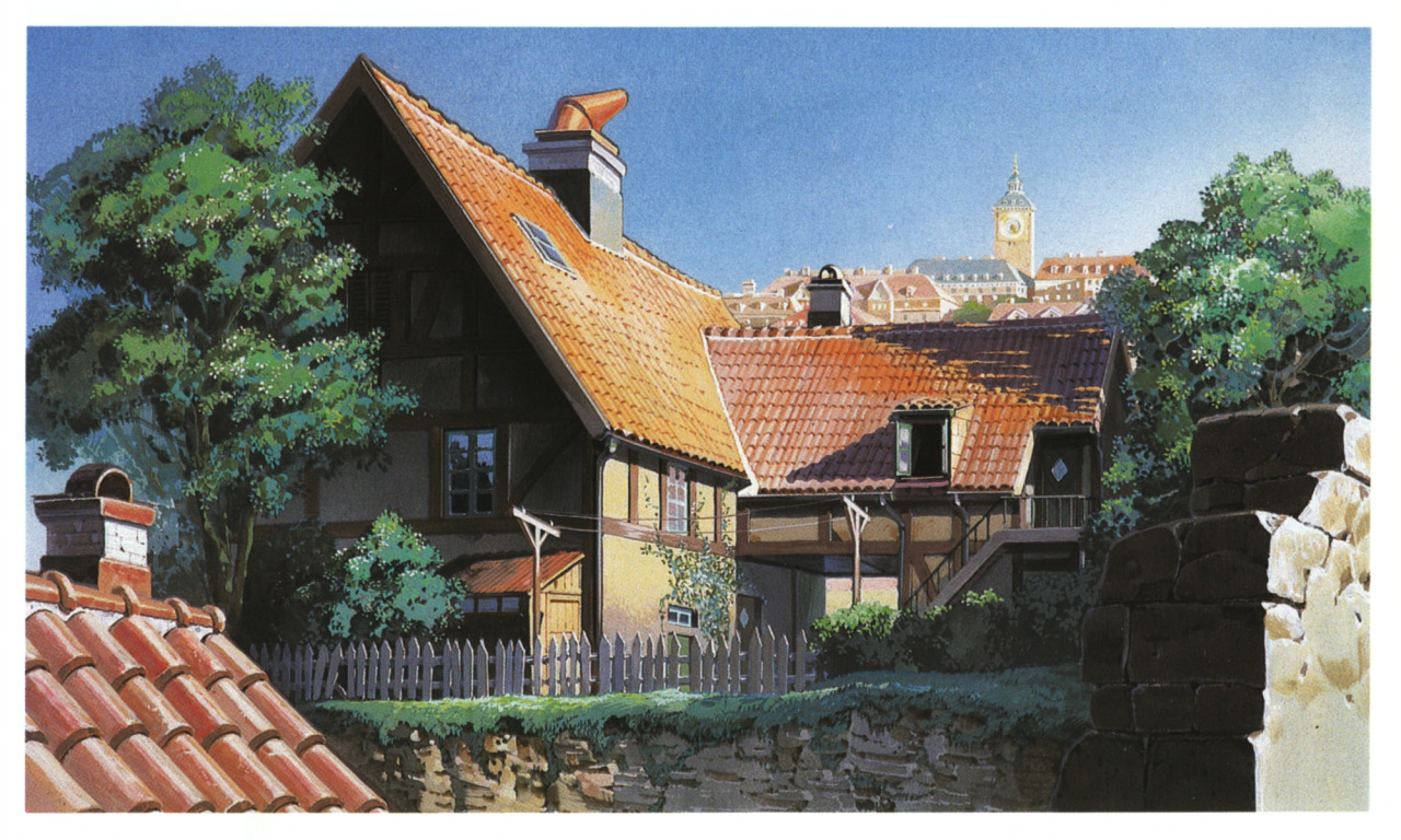 крыша, лето, деревья, забор, башня, дома, ведьмина служба доставки, Kiki`s delivery service