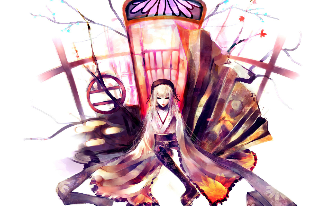 Назад к обои дверь, белый фон, кимоно, rozen maiden, suigintou, девы розена