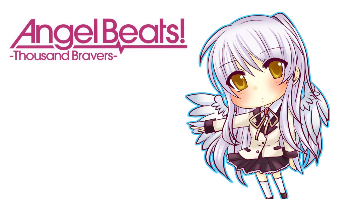 Назад к обои чиби, школьная форма, желтые глаза, Kanade Tachibana, tenshi, белые крылья, Ангельские Ритмы!, длинные белые волосы