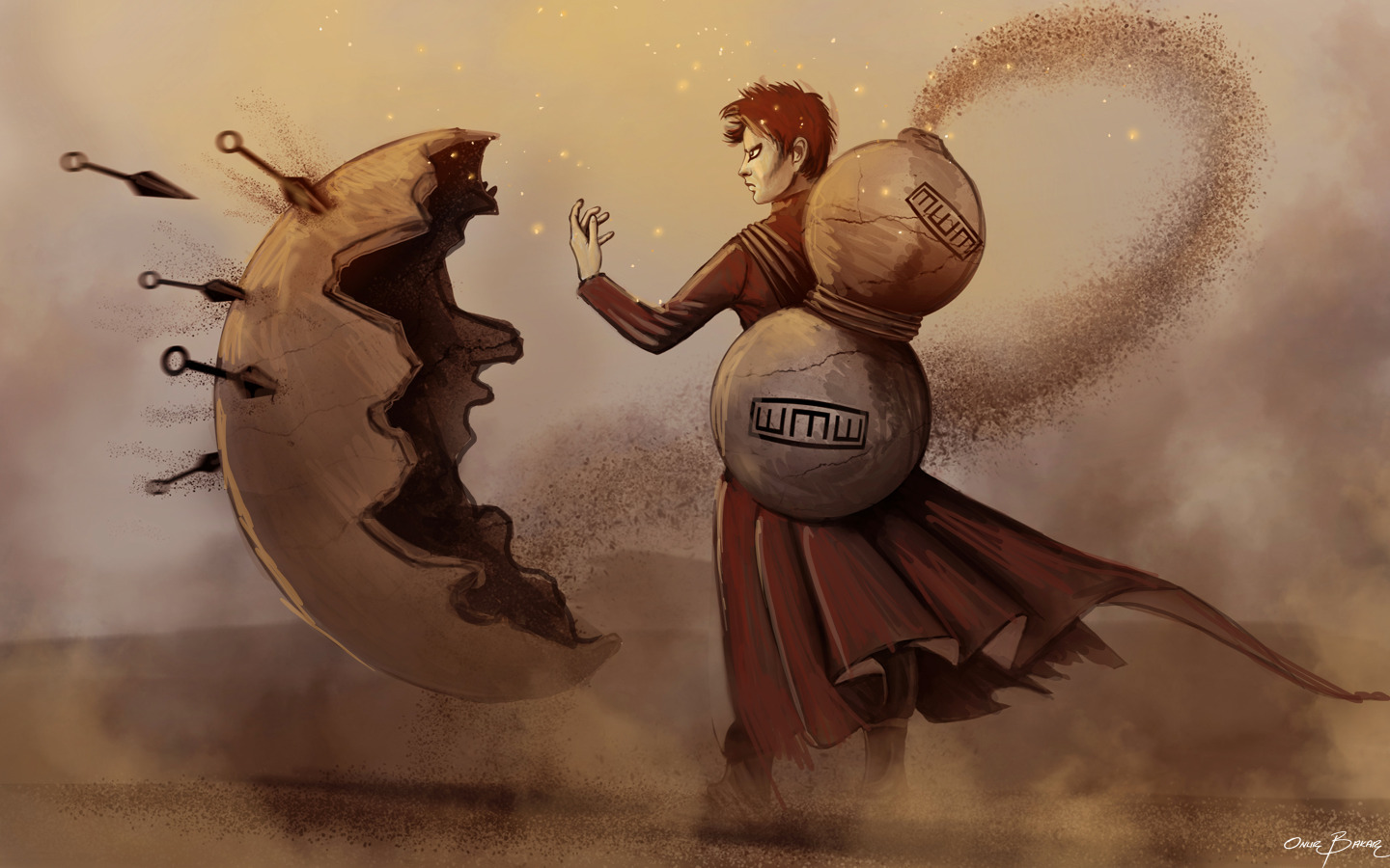 Назад к обои песок, арт, парень, Naruto, kazekage, Gaara