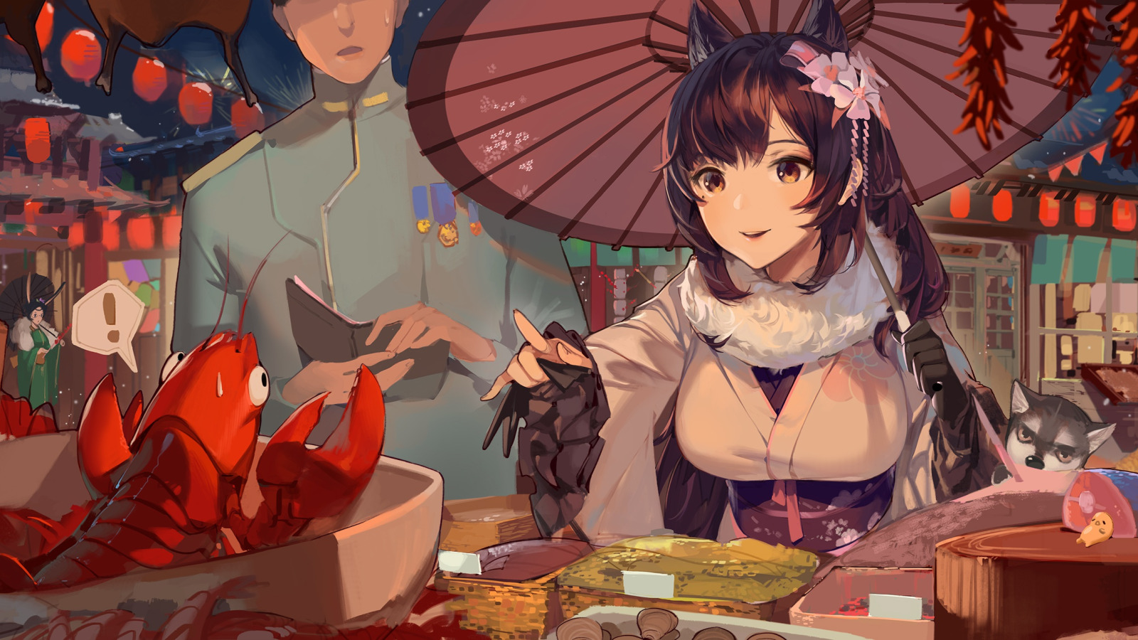 Назад к обои девушка, аниме, ресторан, Лобстер, Azur Lane