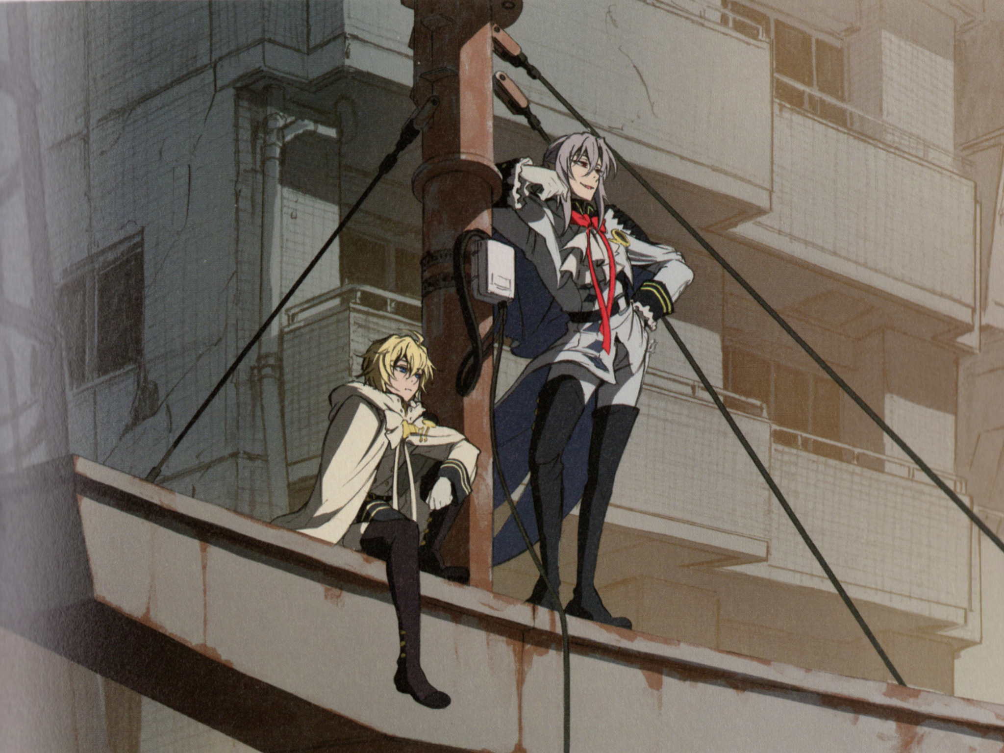 Назад к обои столбы, провода, сапоги, вампир, военная форма, Owari no Seraph, Michaela Hyakuya, Felid Bathory