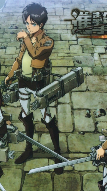 Назад к обои брусчатка, разрушение, эмблема, военная форма, клинок, Shingeki no Kyojin, Mikasa Ackerman, Eren Yeager