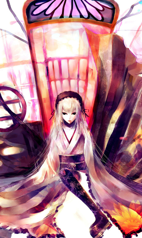 Назад к обои дверь, белый фон, кимоно, rozen maiden, suigintou, девы розена